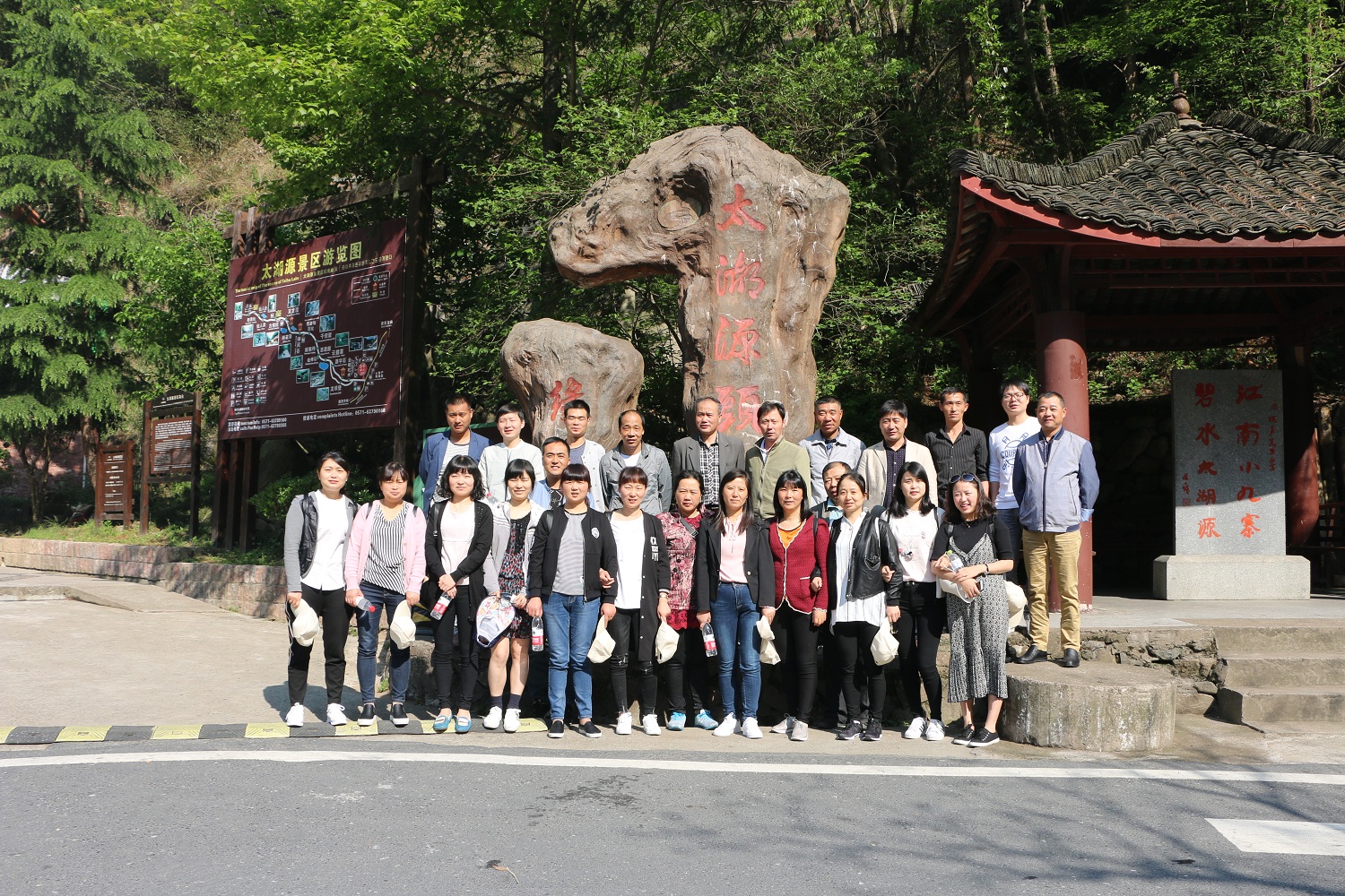 最后一天的行程——太湖源。太湖源有著“小九寨溝”之稱,大約有98%的植被覆蓋,植物種類也非常豐富。一踏入太湖源大門,清風(fēng)撲面而來,映入眼簾的同樣是郁郁蔥蔥的樹木,一縷陽光透過樹木照射到我們身上,頓感身心舒暢。