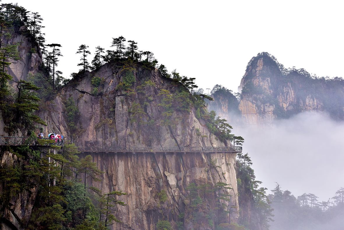 首站,浙江大明山。蒙蒙細(xì)雨,讓我們見識(shí)到了大明山的獨(dú)特風(fēng)采:山頂雨霧繚繞,懸崖雄偉壯麗,瀑布飛流直下,樹木郁郁蔥蔥,此派景象如詩如畫,如置身仙境。大明山山脈綿長,越往上走空氣越是寒冷,大家相互鼓勵(lì),相互幫助,誰也不曾有過放棄的念頭,最終在大家的不懈努力下如愿登上了山頂,大明山的秀麗景色盡收眼底。