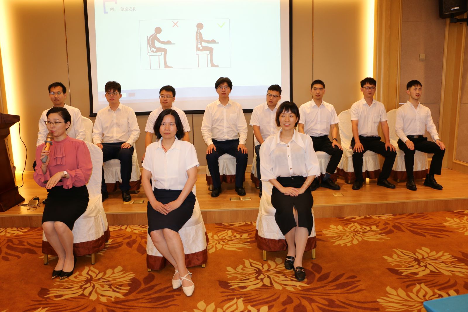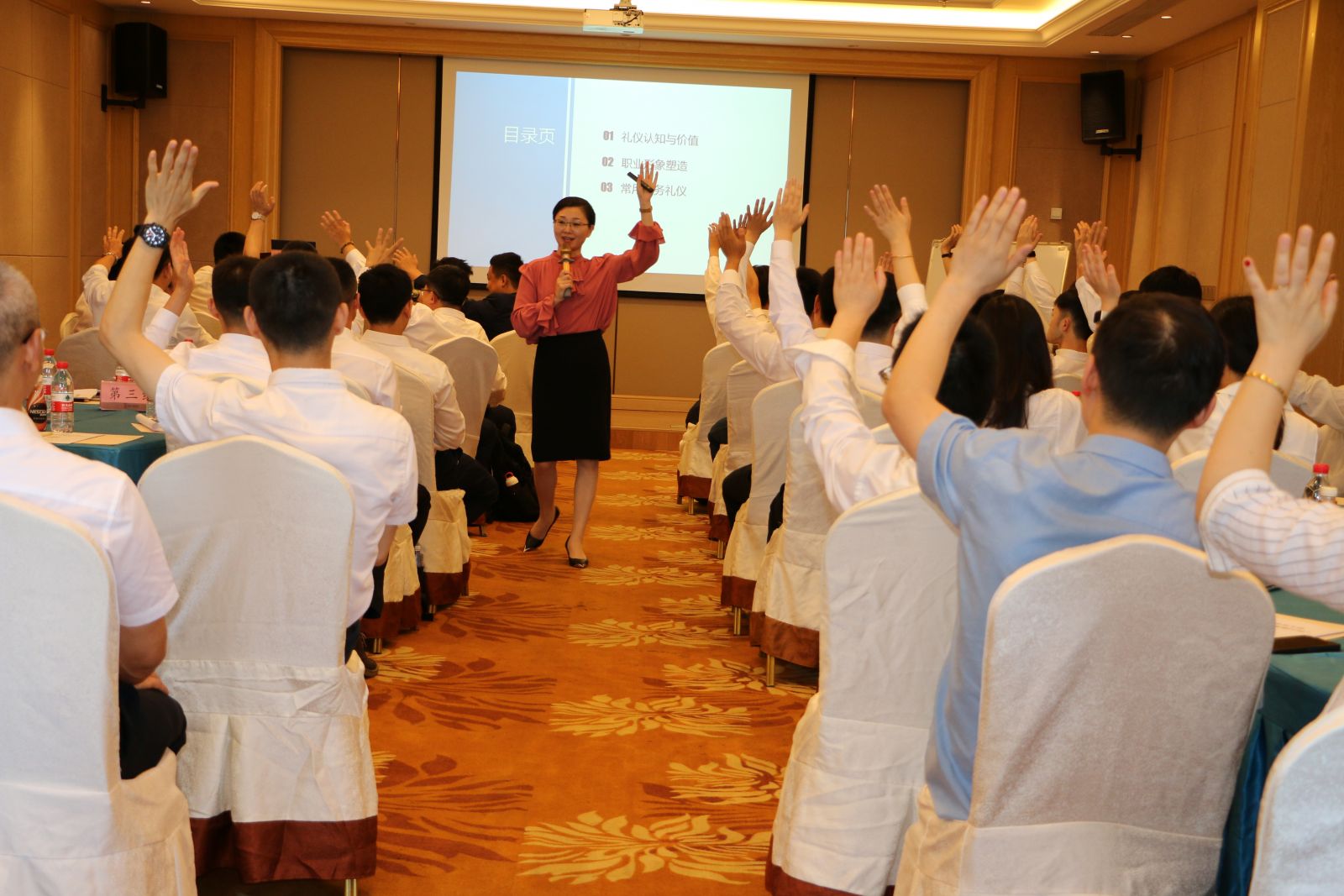 我們非常榮幸地請來了企業(yè)形象禮儀特聘講師趙崢老師,由她給我們進行《職業(yè)形象與商務禮儀》的培訓。趙老師分別從禮儀的認知與價值、職業(yè)形象塑造、常用商務禮儀等多方面展開培訓,讓我們充分了解了何為“禮”,何為“儀”。從儀容管理、儀表管理、儀態(tài)管理、禮儀應用和心理管理多方面展開,結(jié)合現(xiàn)場演示、實戰(zhàn)演練、現(xiàn)場點評等方式,讓學員們受益匪淺,更加深刻地了解了職業(yè)形象的重要性與商務禮儀文化。